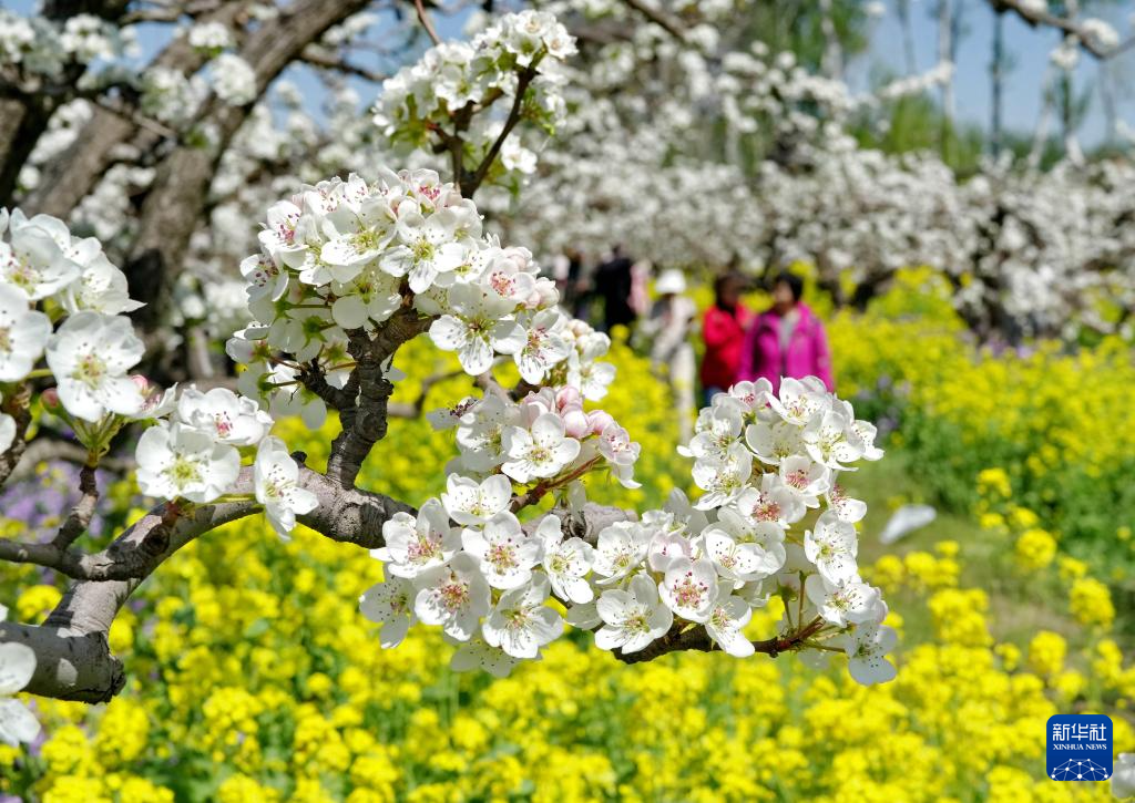 河北省晋州市では最近、面積17万ムーの梨畑が満開の時期を迎えた。梨の花と、田畑一面に咲くアブラナの花が互いに美しさを引き立て合い、多くの観光客が花見や春の散策、レジャーを楽しむために訪れている。