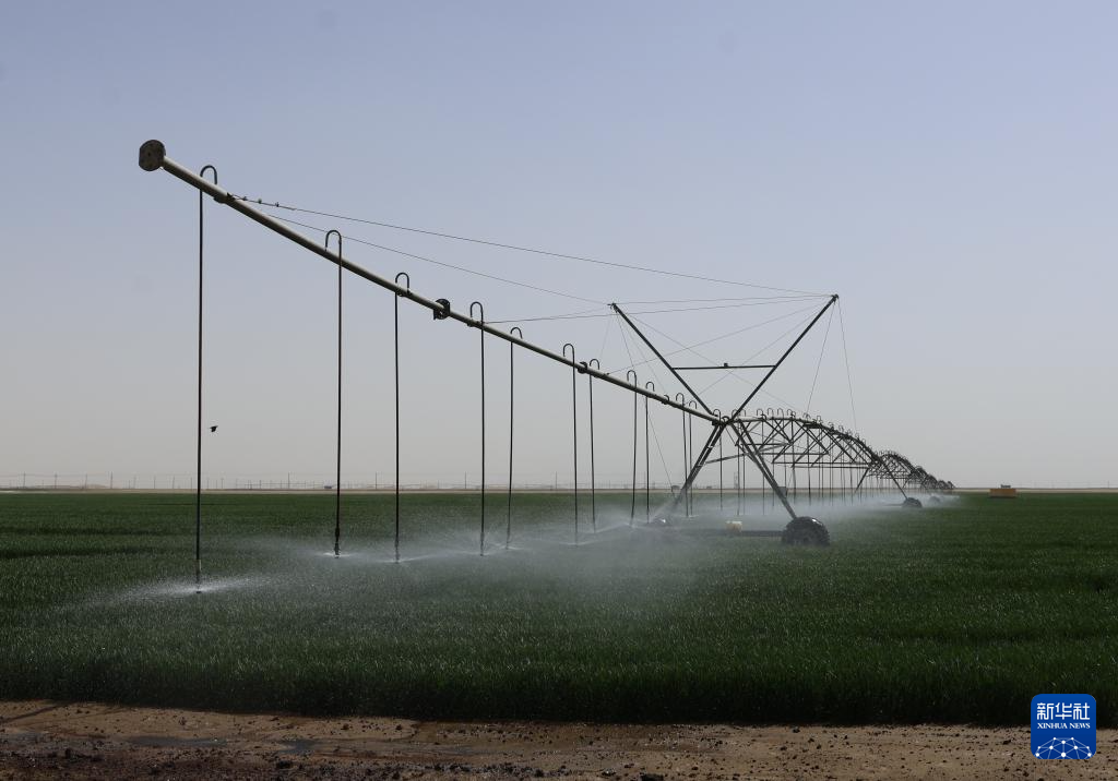 砂漠の縁で青々と育つ麦 新疆・昆玉