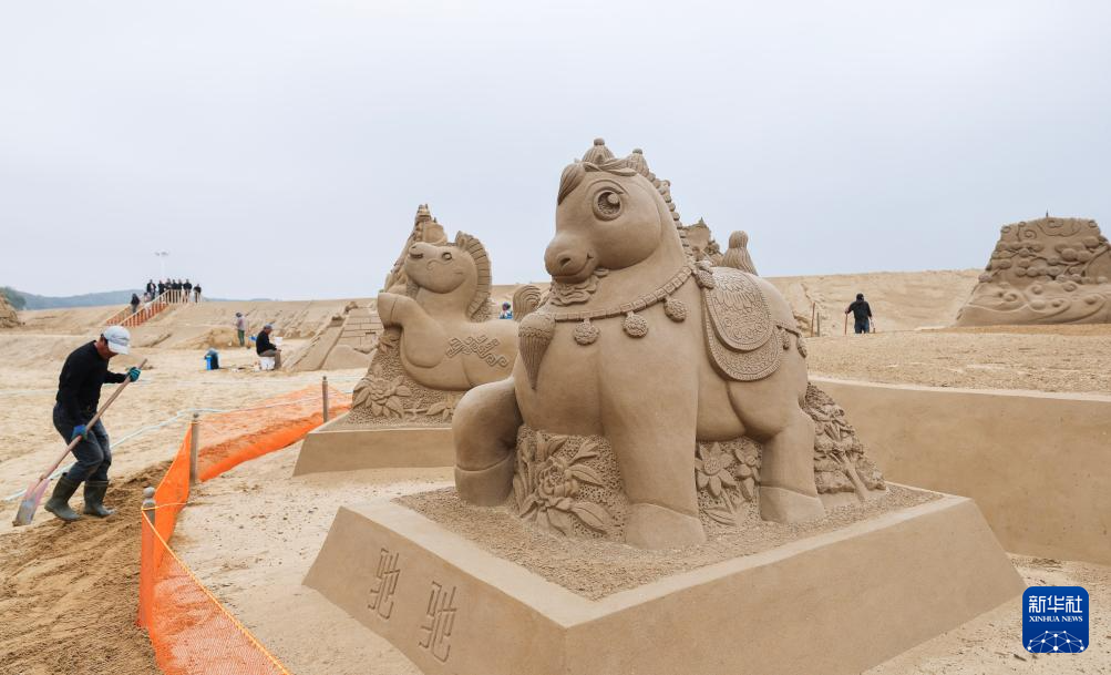 今回のサンドアートフェスティバルは、朱家尖南沙にある総面積1万平方メートルの専用サンドアートパークで、馬をテーマとした50以上の砂像作品による開催を予定。制作期間は今月1日から20日までで、5月上旬に正式に一般公開される。