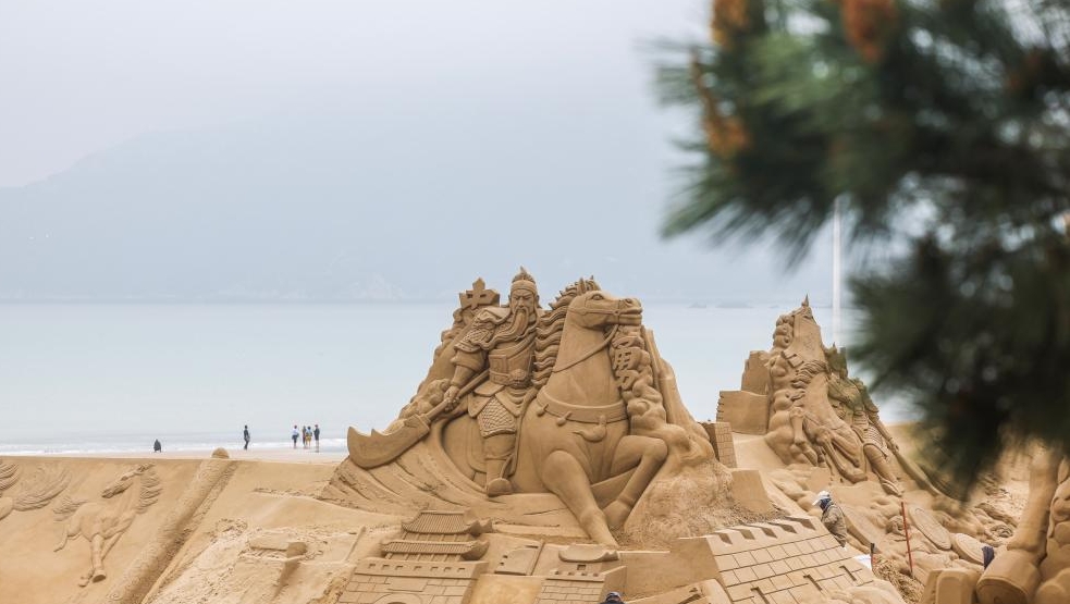 浙江省舟山市の朱家尖・南沙景勝地では最近、2026舟山サンドアートフェスティバルの砂像作品の制作が順調に進んでいる。