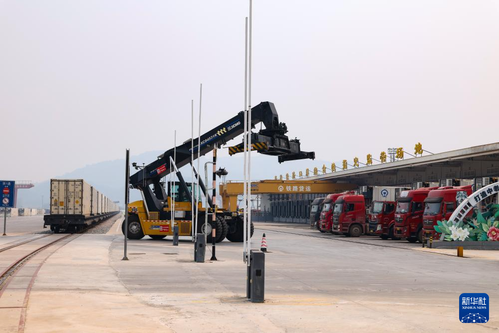 国境を越える貨物列車の1日あたりの運行本数は、開通当初の2本から最大23本へと増加し、列車のけん引トン数も2000トンから2800トンへと拡大した。取り扱う越境商品の種類も、開通当初の肥料やゴムなど10数種から、現在では化学製品、生鮮品、繊維、電気製品、鉱石、農業副産物など3800種以上へと広がっている。これにより、地域の繁栄と発展に新たな活力と成長の原動力がもたらされている。