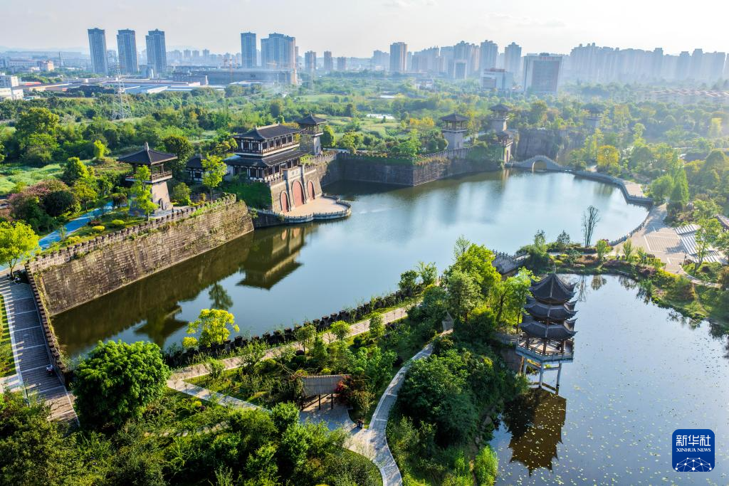 春の日差しの中、重慶市栄昌区の玉帯河公園は緑に包まれ、澄んだ水辺の景観が広がる。多くの市民や観光客が訪れ、水辺の歩道を散策し、足を止めて景色を眺め写真を撮る。和やかで生き生きとした春の風景が広がっている。
