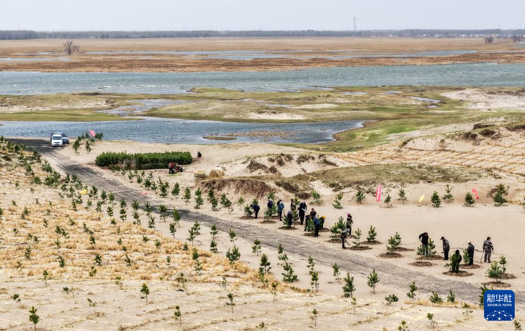 科爾沁砂漠の緑化作戦が進行中 内蒙古通遼市