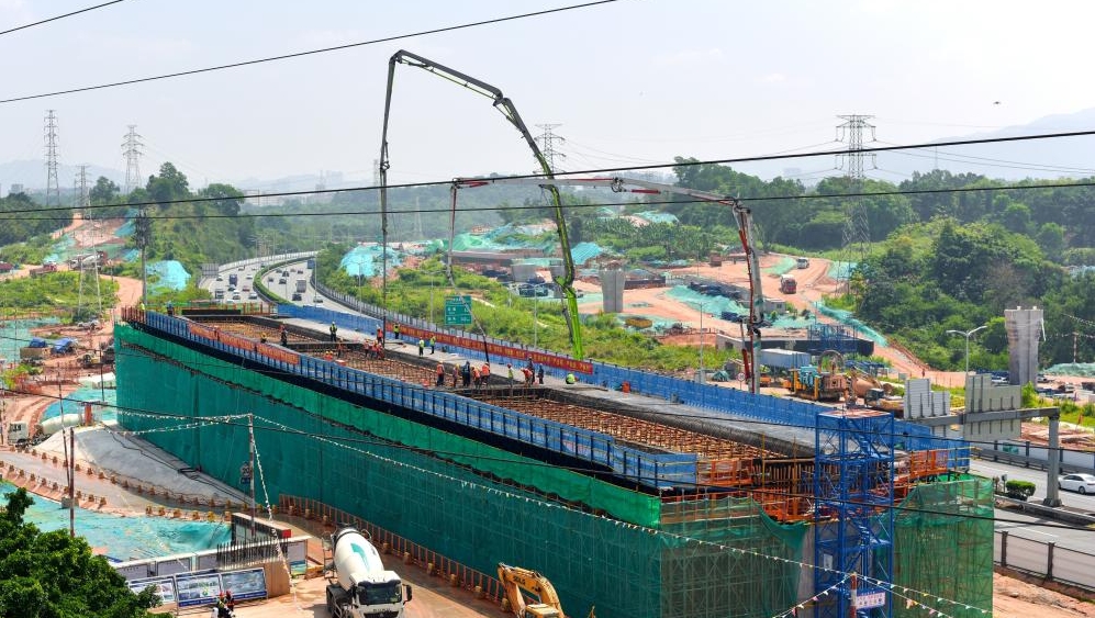 深セン機荷高速拡張工事、初の現場打ち梁を打設