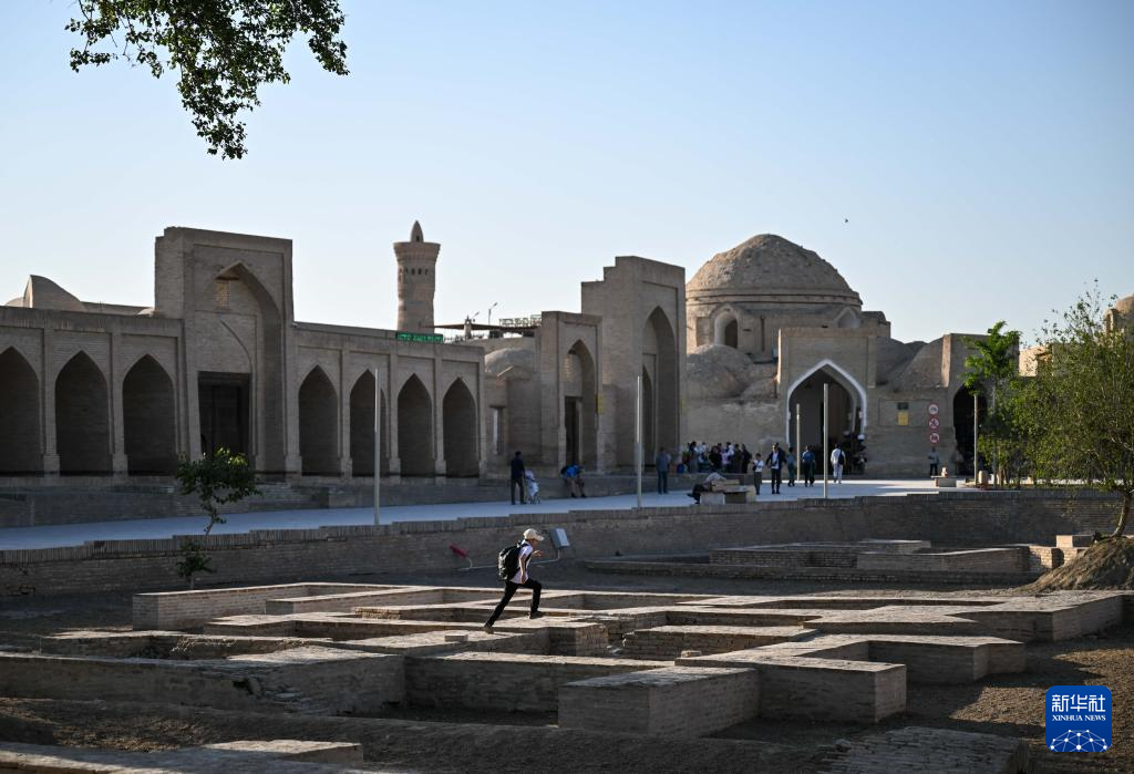 4月24日、ウズベキスタンのブハラ旧市街で走る少年。新華社記者 李任滋撮影