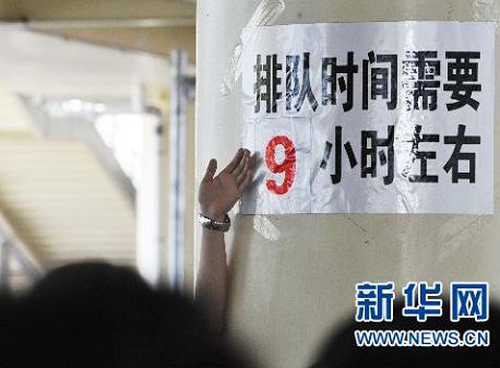 7日に「待ち時間9時間」と書かれた紙が貼られた上海万博のサウジアラビア館では、列に並んで待っている間に記念写真を撮る人もおり、中には食べ物などを用意して持久戦に備える人も見られた。