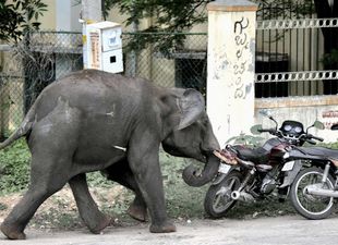 4頭の野生のゾウが6月8日、インド南部の町マイソールに現れ、自動車、店、通行人などを襲った。うち、1人がゾウに踏まれて亡くなった。現地の森林部門によると、この4頭の野生のゾウは郊外の森からやってきたという。