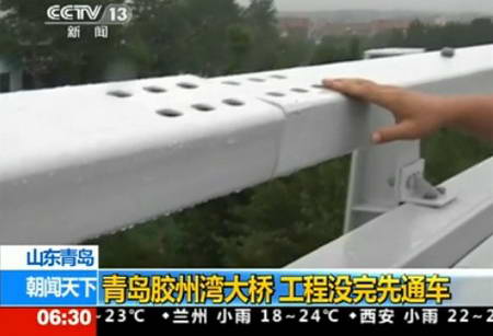 大橋管理部門によると、コウ州湾の1日あたりの自動車通行量は5万台の設計で、開通からのここ数日の通行量は約1万8千台と少ないという。通行量が少なく橋の路面が平坦なため、大橋を通行する車は速いスピードを出しており、必要不可欠な安全設備である柵と照明灯がまだ完成していないのは非常に大きな不安材料といえるだろう。 「人民網日本語版」2011年7月6日