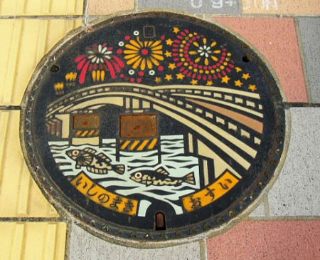 石巻市のマンホールには、北上川で毎年1度行われる祭が描かれている。百年近く前、この川の両岸の人々は多くの災難に見舞われてきた。そのため毎年夏になると、亡くなった祖先を悼むとともに、時には花見大会を行うようになった。