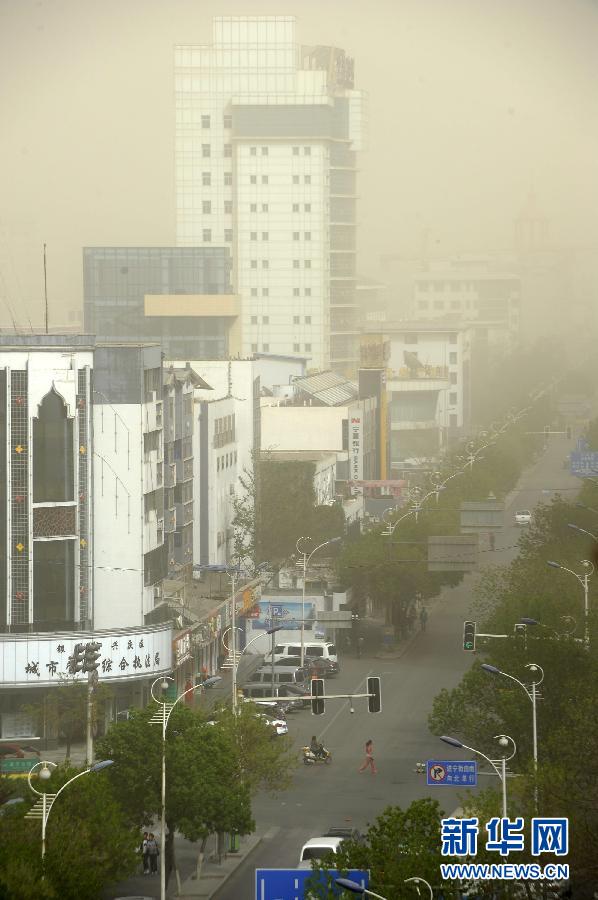 当日、中央気象台は砂嵐青色早期警報を出し、新疆南部、内モンゴル西部、甘粛西部、寧夏中北部、陝西北部などで黄砂やちり煙霧が観測された。