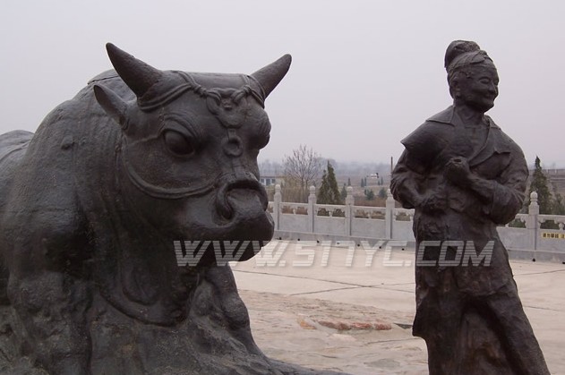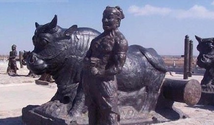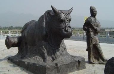 遺跡から出土された黄河大鉄牛(全4体)は、唐の開元十二年(西暦724年)に造られ、1,300年の歴史を持つ。各鉄牛はそれぞれ55~75トンあり、造形は美しく、威風堂々としている。鉄牛は鉄の人間によって牽引され、それぞれウイグル、モンゴル、チベット、漢族の4つの民族を代表しており、民族大団結の象徴である。
