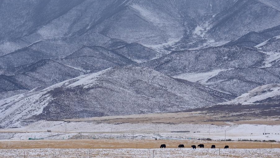 高原を潤す春の雪 青海省祁連県