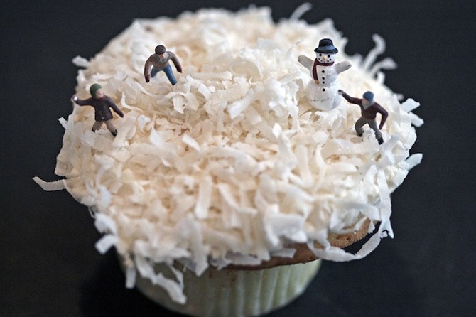 紅茶の海でダイビング、カップケーキで雪合戦 食とミニチュアの世界