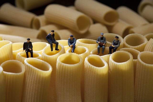 この一連の作品は、アメリカ・シアトルで活躍するカメラマン、Christopher Boffoli氏が撮影したものである。身近にある食材とミニチュアを使って、実に生き生きとした情景を造り出している。キャンディーやビスケット、パンの世界で生活する小人たちはなんとも不思議で面白い。