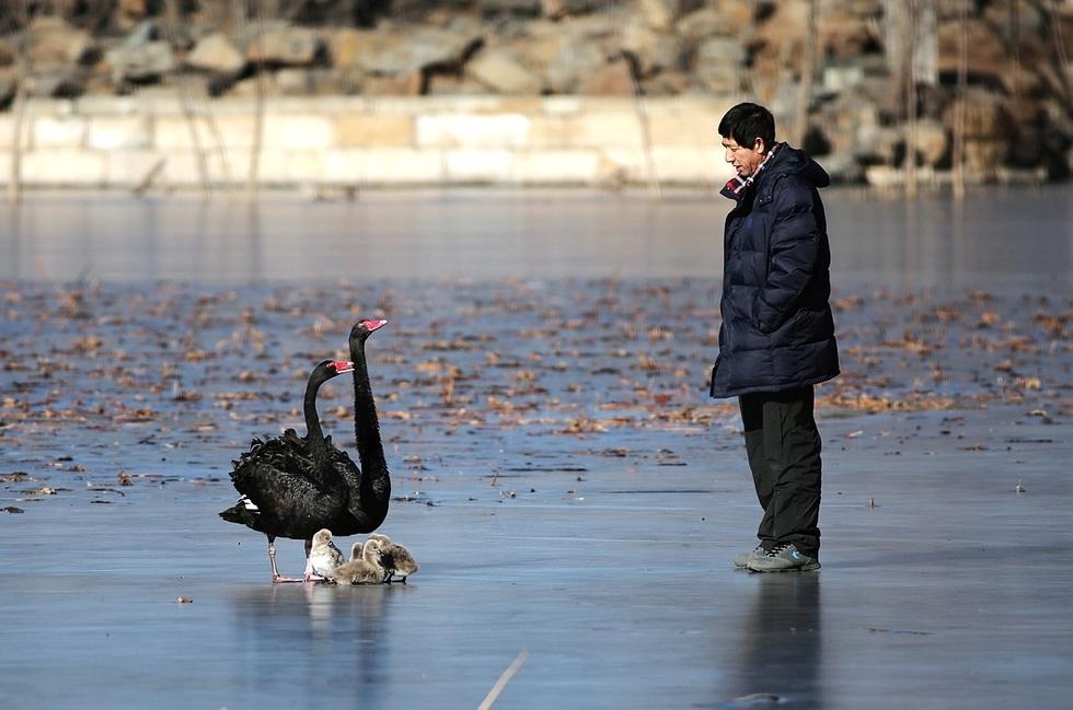 北京の円明園のコクチョウがこのほどインターネットで人気を呼んでいる。生まれたばかりの4羽の黒白鳥のかわいらしい姿はネットユーザーをとりこにした。実は、彼らのストーリーはまだまだあり、かわいいだけでなく、人間に感動も与えている。これは写真家の田文江氏が撮影した写真で、彼はコクチョウ一家の幸せな生活を完全に記録した。