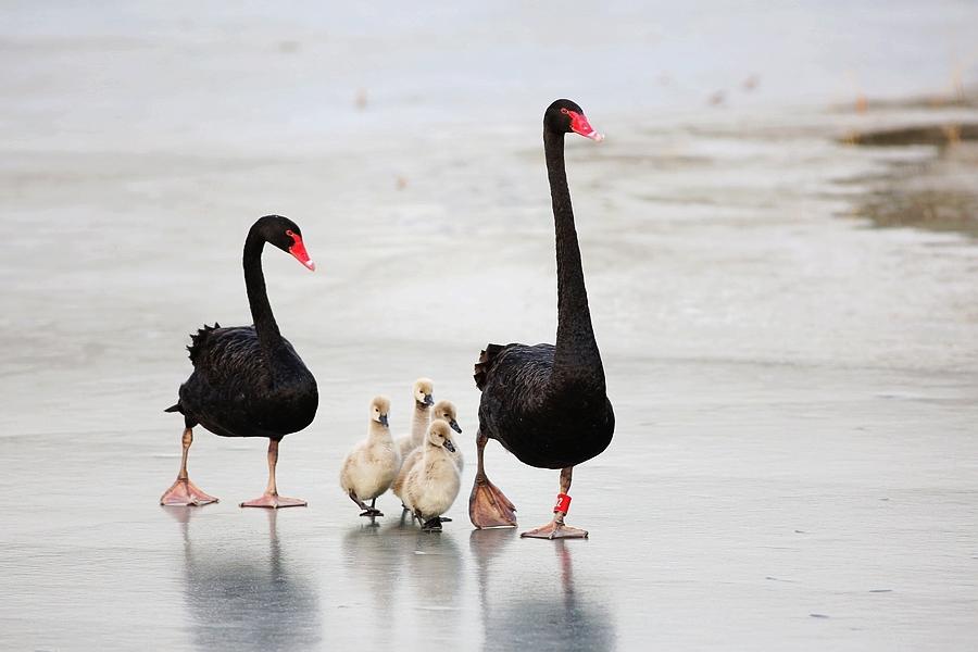 写真家が密着撮影した4羽の黒白鳥の成長記