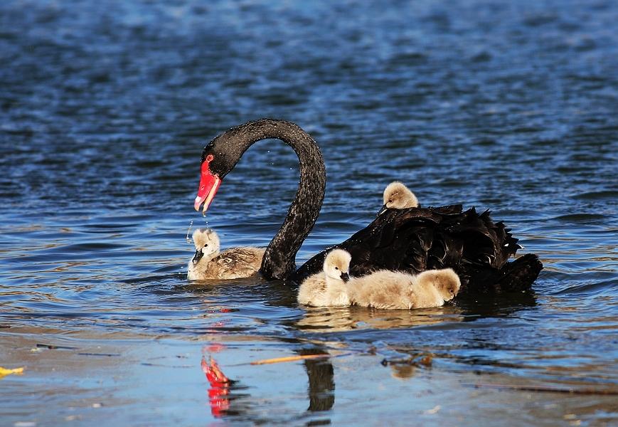 写真家が密着撮影した4羽の黒白鳥の成長記