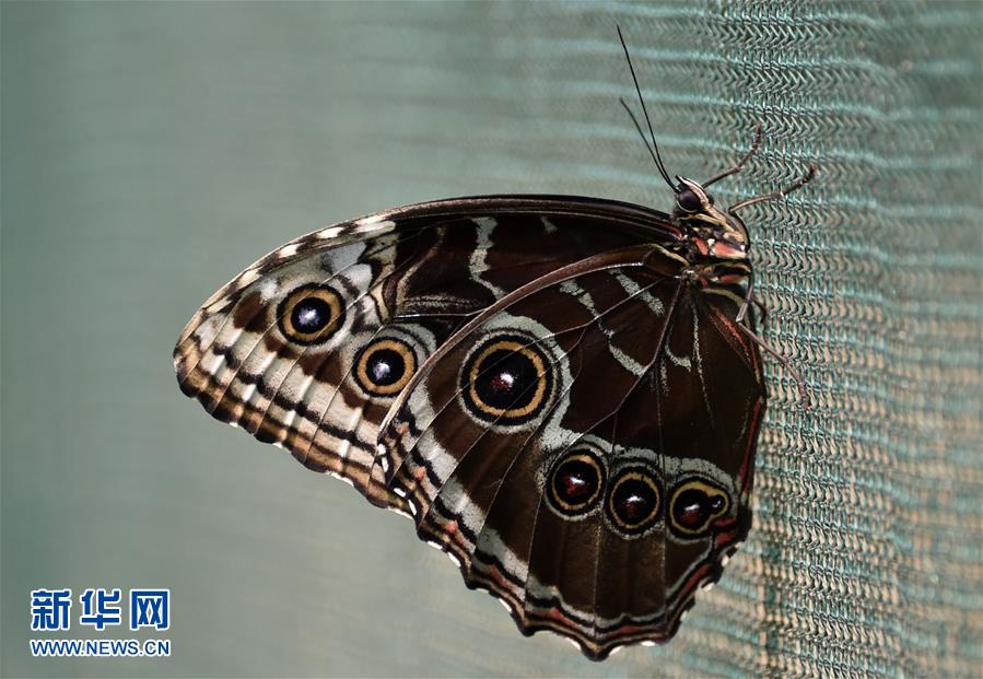 2月20日、パナマの首都パナマ市にあるバタフライファームで撮影したメネラウスモルフォ。