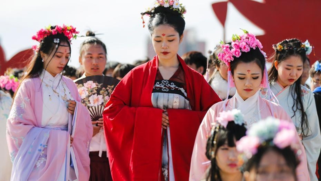 3月12日は旧暦2月15日の「花朝節」だ。福州市烏山では「花朝節」の伝統的な文化活動が行われた。同日、美しい「花神」が登場した。福建漢服天下協会の、漢服を身にまとった女性12人が、山で咲き誇る花々に向かった。漢服の美を披露し、春への賛美を吟唱した。