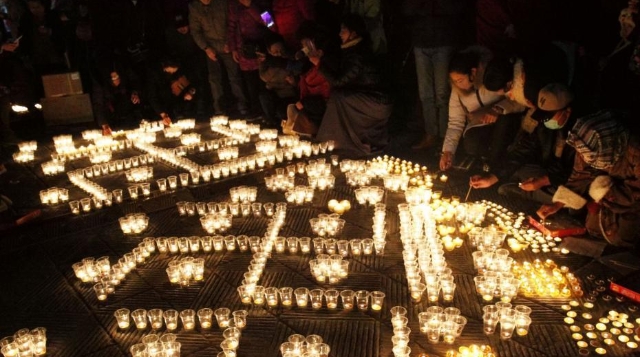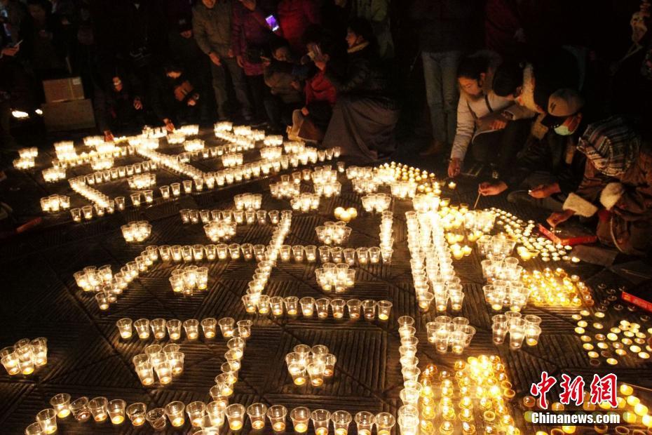 チベット歴10月25日(西暦12月12日)は、ツォンカパ大師円寂記念日だ。中国の青海省、チベット自治区、甘粛省などのチベット民族居住区の僧と信者は同日、酥油灯を灯しツォンカパを記念した。写真はチベット仏教の信者が、ツォンカパ生誕地のタール寺で点灯する様子。