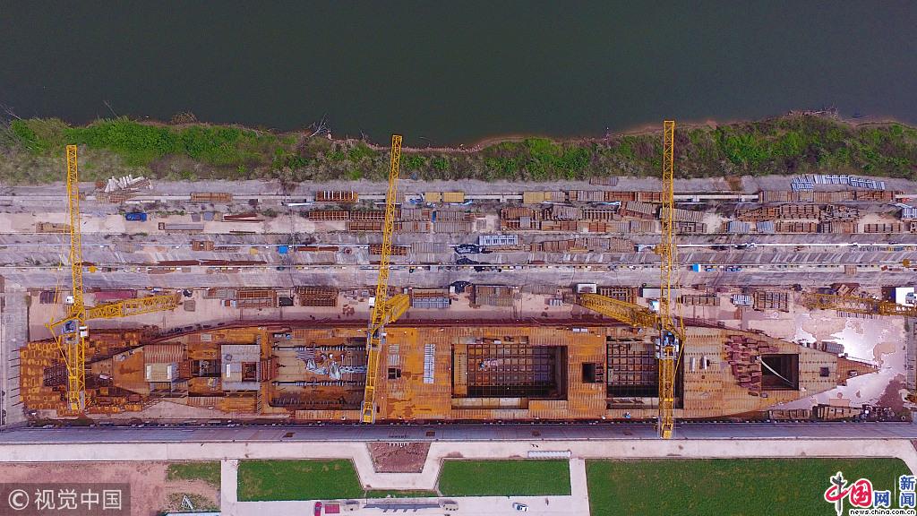 四川省遂寧市で15日、フルスケールのタイタニック号の建設状況が撮影された。建設は急ピッチで進められている。タイタニック号の全長は269.06メートル、幅は28.19メートル、喫水は10.54メートル。内部には宴会ホール、劇場、スイートルーム、展望台、プールなどがあり、当時の豪華なタイタニック号を再現する。