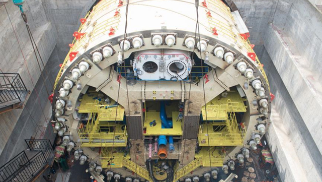 インドネシア・ジャカルタのジャカルタ〜バンドン高速鉄道1号トンネルプロジェクトの現場で20日撮影された、組立中のシールドマシン。