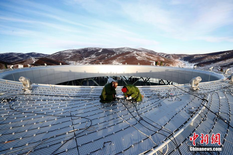 12月8日、河北省張家口市崇礼区の国家スキージャンプセンター「雪如意」は建設が急ピッチで進められている。北京2022年冬季オリンピックで、ここはスキージャンプの会場となる。