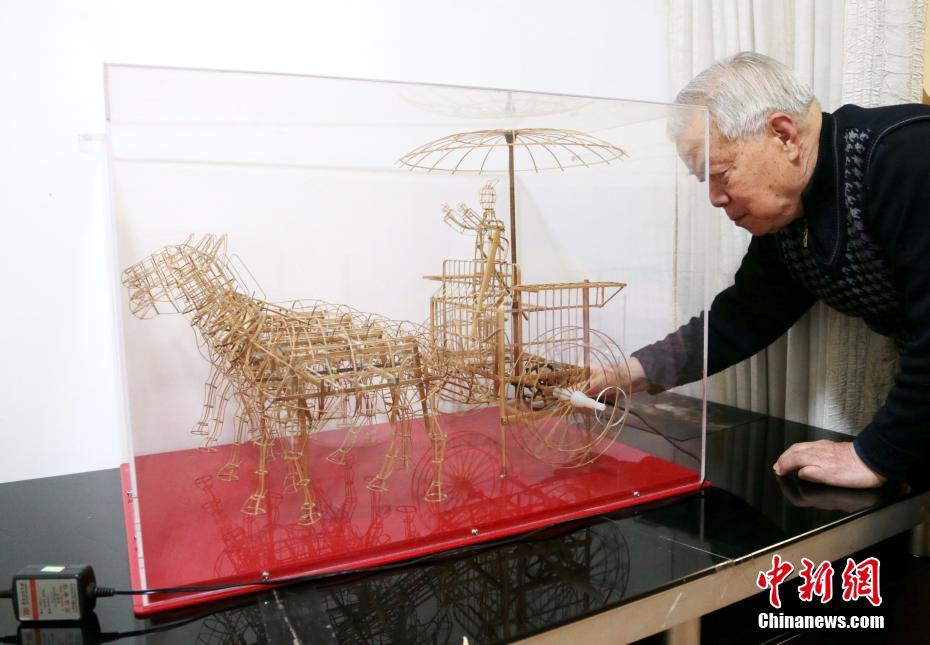 西安市の80代男性、900本の竹で動く「銅車馬」を制作
