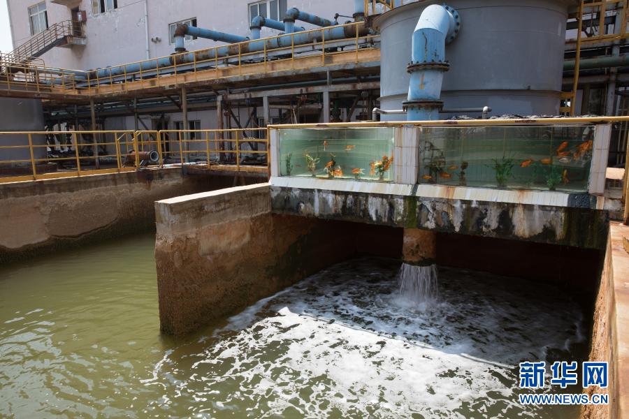安徽銅陵有色金冠銅業支社の排水口展示用の処理後の基準を満たす排水養魚(2018年8月8日)
