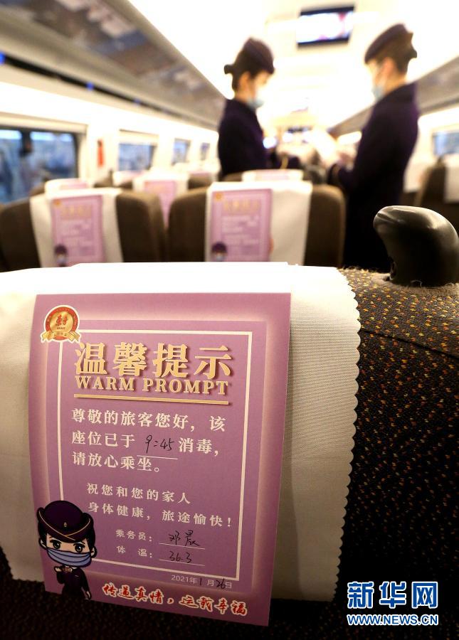 2021年の春運(春節帰省ラッシュ)が近づき、鉄道上海旅客輸送区間は常態的な防疫要求を実施し、防疫知識の説明、列車の公共エリアの消毒の強化、列車防疫パックと真心マスクの用意などの措置を通し、旅客が安全に乗車できるようにしている。