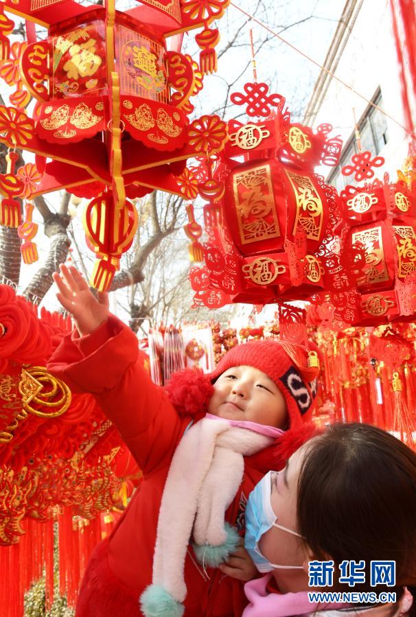 春節が近づく甘粛省臨夏回族自治州永靖県劉家峡鎮で、住民が新春を喜び迎えようと年越し用品の購入に追われていた。