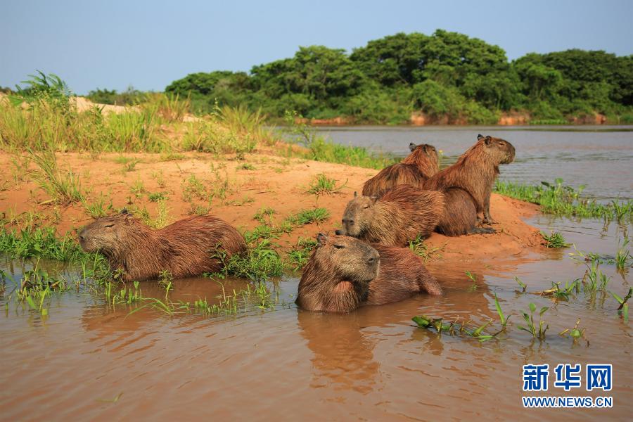 南米大陸中部のパンタナル湿地で生息するカピバラ(2015年12月5日撮影)。