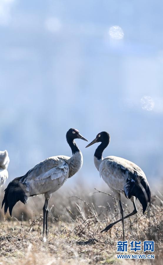 晩冬・早春の貴州省畢節市威寧イ族回族ミャオ族自治県の草海国家級自然保護区が再び、渡り鳥の越冬のピークを迎えた。高い所から遠くを眺めると、水域面積が25平方キロメートルを超える草海は波打ち、日差しを浴び輝いている。ここで越冬するオグロヅル、ナベヅル、インドガンなどの渡り鳥が群れをなし、水の上で追いかけ合い戯れ、低く空を舞い鳴き声を上げる。この美しい高原の湿地に活気をもたらす。