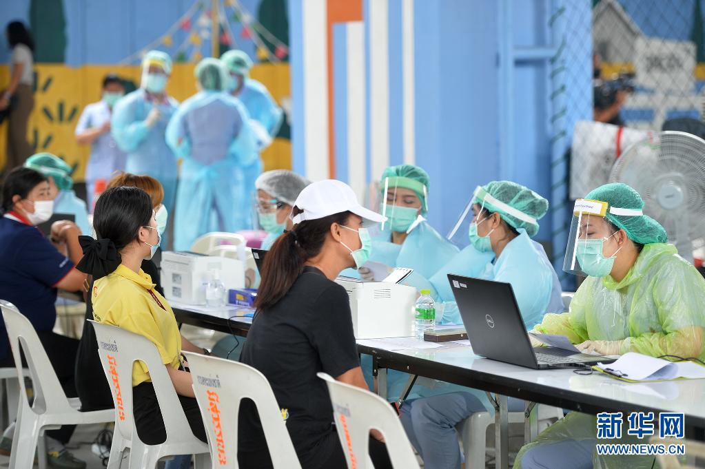 タイのバンコクで7日、住民が中国科興製の新型コロナウイルスワクチンの接種を受けた。