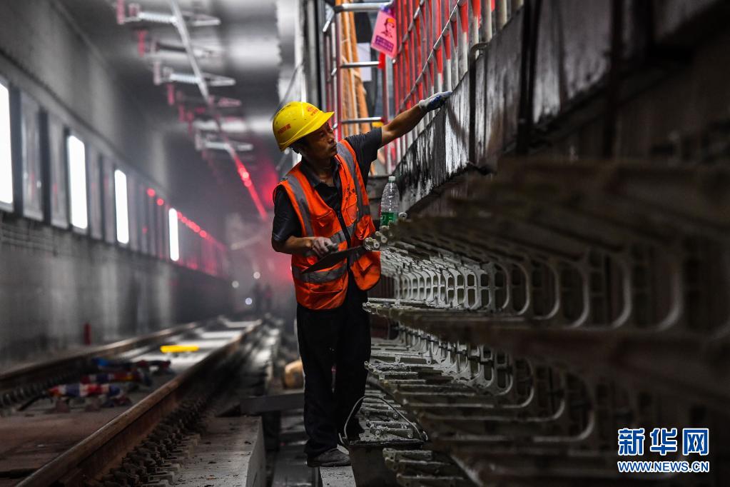 中鉄十一局集団三公司の施工担当者が20日、レール溶接機を使い竜潭〜磨碟沙区間のトンネル内の最後のジョイント部の溶接を完了した。これにて全長58.3キロの広州地下鉄18号線の第1区間(万項沙〜冼村)の全線のレールがつながった。広州地下鉄18号線は広州市の中心地と南沙自由貿易区を結ぶ、粤港澳大湾区初の時速160キロの地下鉄線路だ。
