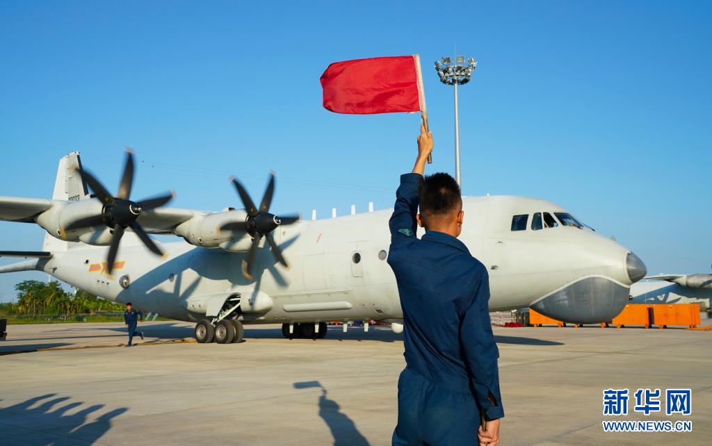 海軍航空兵整備士が、旗を揚げ軍機の離陸に備えた(資料写真)。