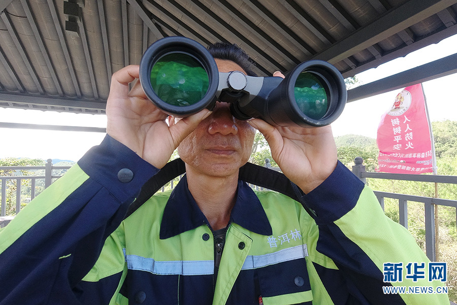 アジアゾウの観測員の楊忠平さんが、食物源基地の状況を観察した(6月15日撮影)。