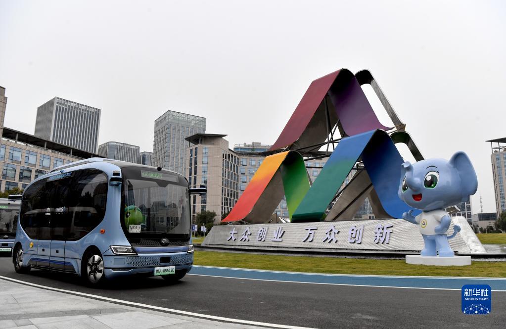 鄭州メイン会場で19日、宇通スマート運転バスが路上を走行した。2021年全国大衆創業万衆革新活動ウィークが同日開幕した。情報によると、同ウィークは「高品質の革新と創造、高水準の創業と雇用」をテーマとし、オンライン・オフライン結合方式を採用。メイン会場は河南省鄭州市で、全国各省、自治区、直轄市、計画単列市、新疆生産建設兵団で同時に開催。