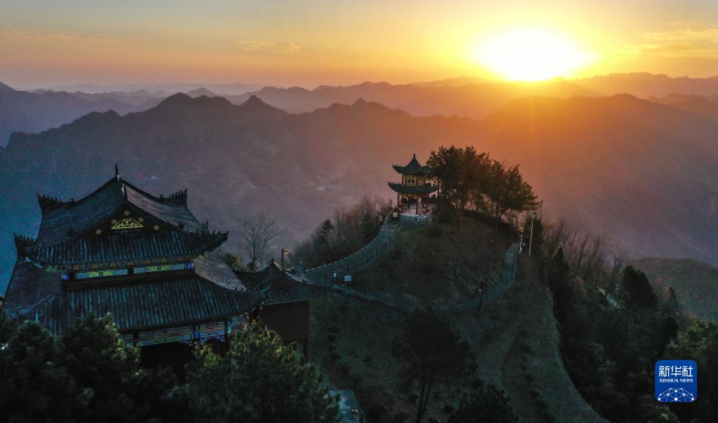 陝西省安康市白河県にある廟山寨風景名勝区の主峰・廟山は雄々しくそそり立ち、周囲に森林が広がり、自然景観が美しい。