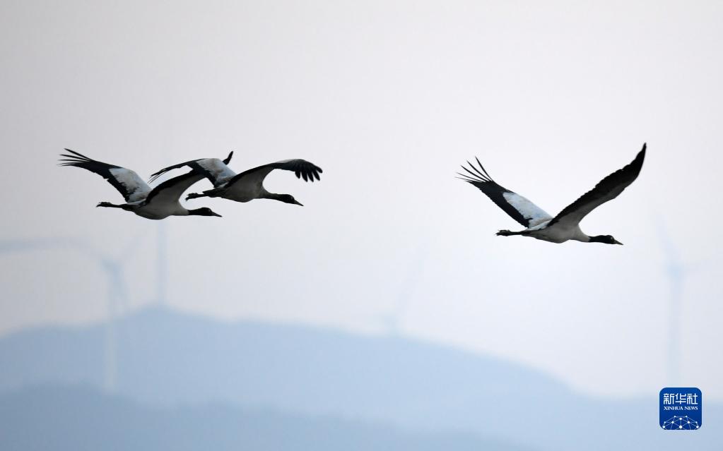 気温が徐々に上がるなか、貴州草海国家級自然保護区で越冬していたオグロヅル、クロヅル、インドガンなどの渡り鳥が次々と移動を開始した。