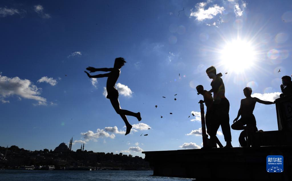 夏を迎えたトルコ最大の都市イスタンブールで、多くの市民がボスポラス海峡で泳ぎ、涼をとっている。