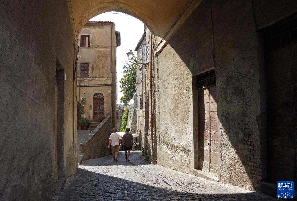 観光客が7日、イタリアのブラッチャーノを訪れた。