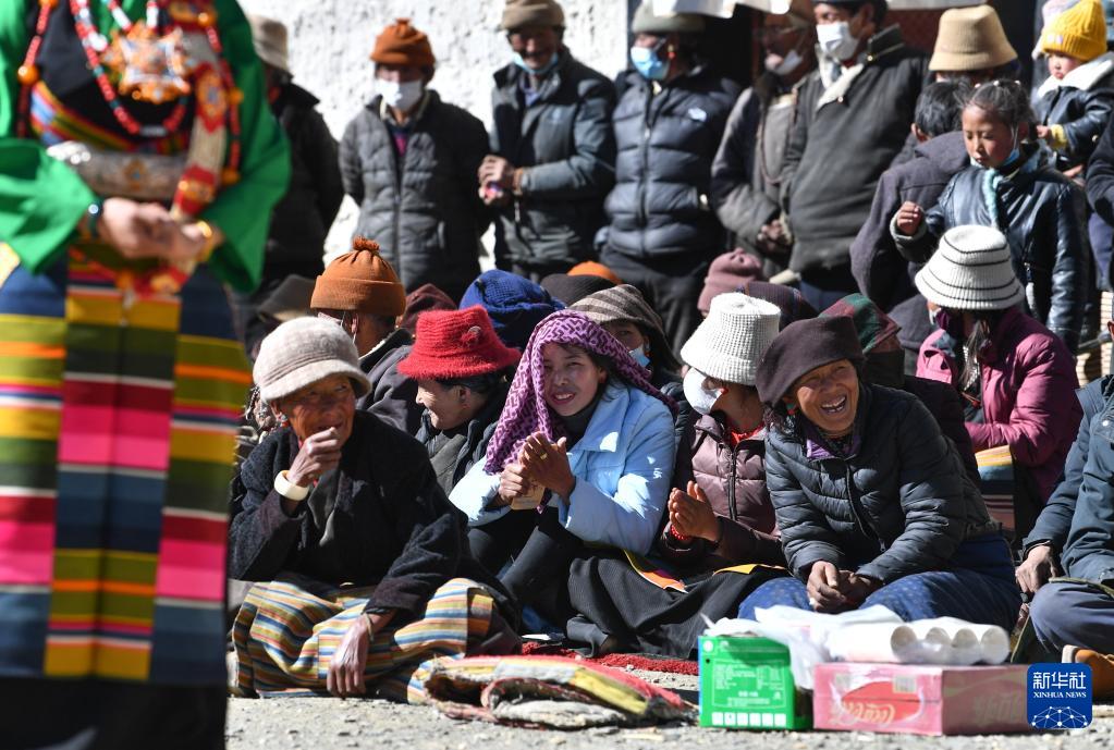 21日、芸能イベントを楽しむ村民。(シガツェ=新華社記者/晋美多吉)