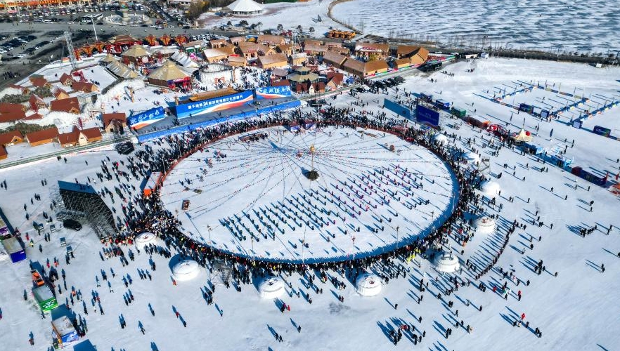 高さ16メートルの雪だるま、松花江の畔に登場...