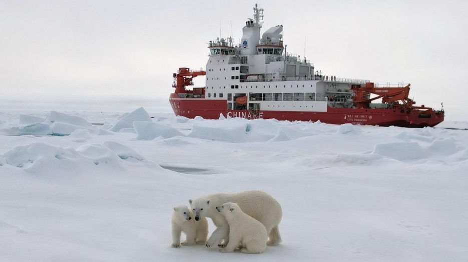北極科学調査隊とクマの家族