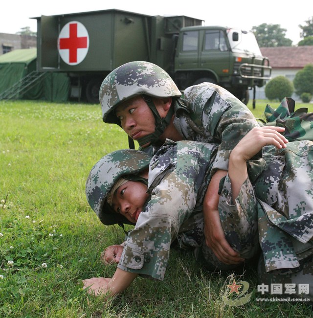 負傷兵を救助する兵士たち