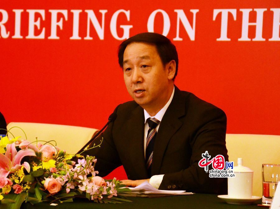 ブリーフィングで清廉な党と政治の建設、反腐敗活動について紹介する中央紀律検査委員会常務委員の崔少鵬秘書長