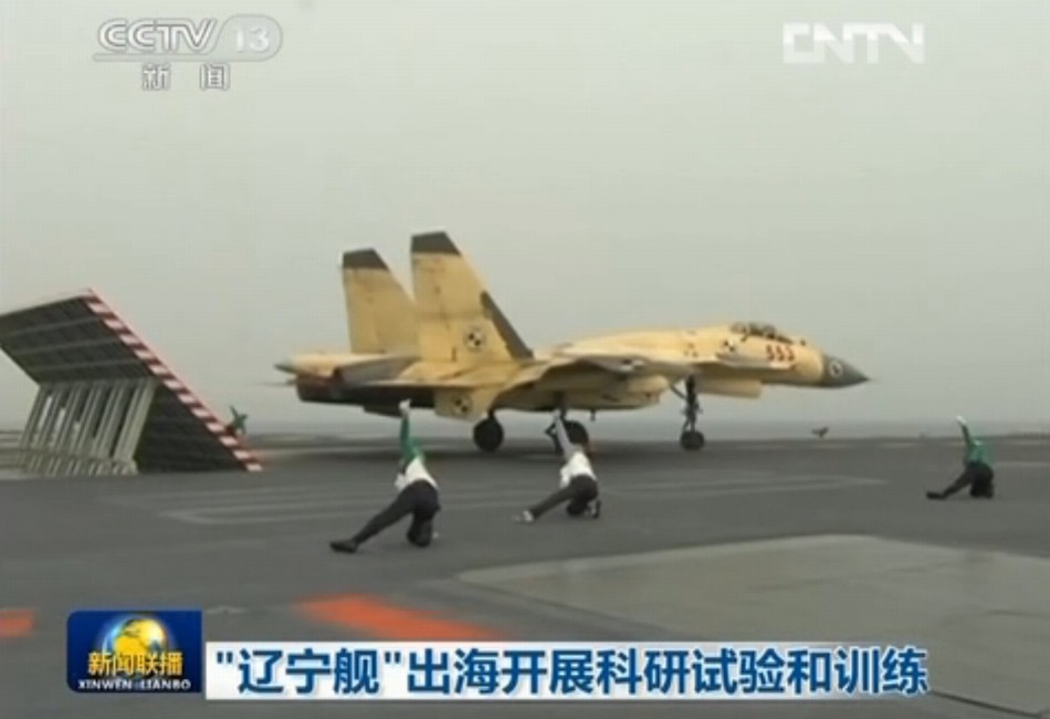 遼寧艦は今年2月下旬に、海上武器装備試験を実施し、初めて青島の某軍港に停泊した。6月上旬から7月下旬にかけては、複数のJ-15艦載戦闘機による空母甲板上の連続発着艦訓練を実施し、さらにJ-15艦載戦闘機のパイロットおよび着艦指揮官が空母資格認証を獲得した。