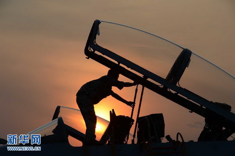 中国軍の「使命行動―2013」演習で、中国空軍の「J-10(殲10)」戦闘機2機が兵器を搭載して離陸し、遠距離急襲任務を行った。