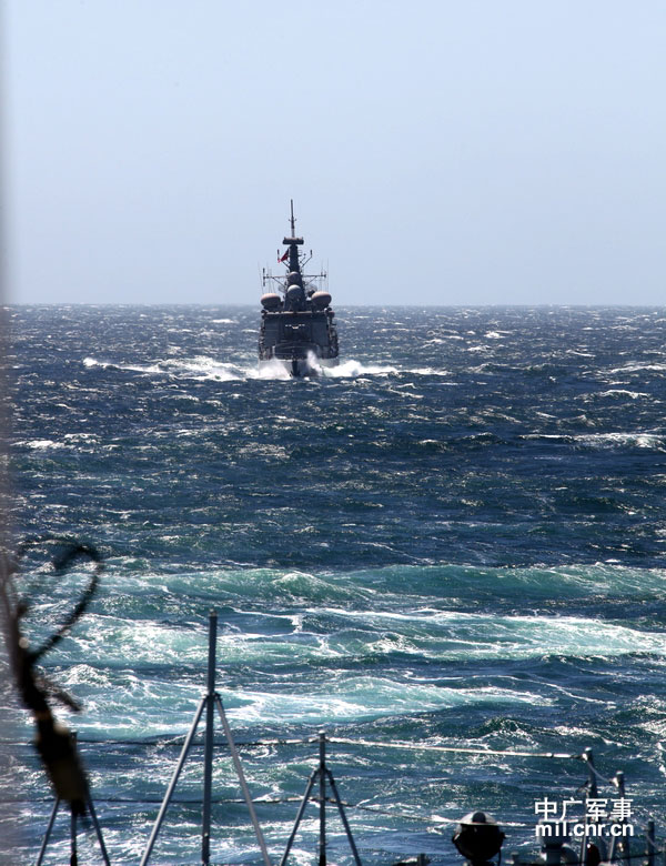 中国海軍の052C型ミサイル駆逐艦「蘭州艦」、054A型フリゲート「柳州艦」から成る艦艇編隊は10日、チリ海軍のフリゲート「アルミランテ・リンチ(旧・英リアンダー級)」と旧オランダのカレルドールマン級のフリゲート、及び航空機5機と共に、海上における合同軍事演習を行った。